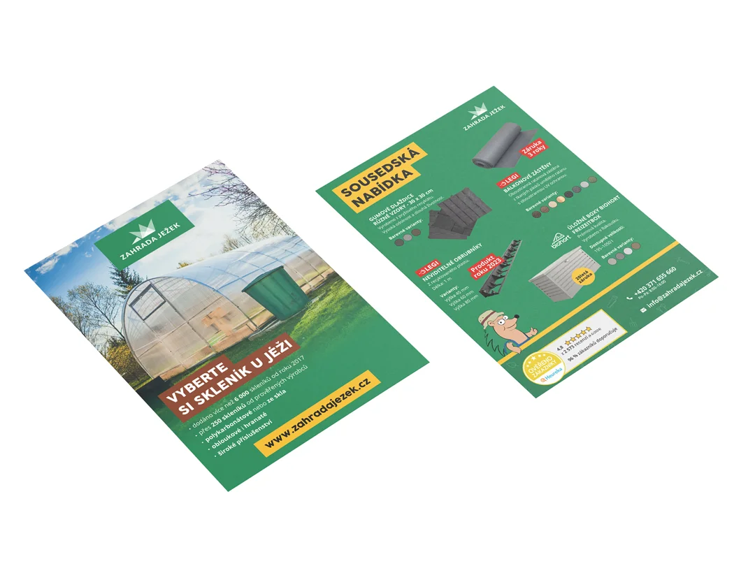 Pro Zahradu Ježek tvořím grafiku pro sociální sítě, pro e-shop, propagační materiály, letáky a další tiskové materiály.